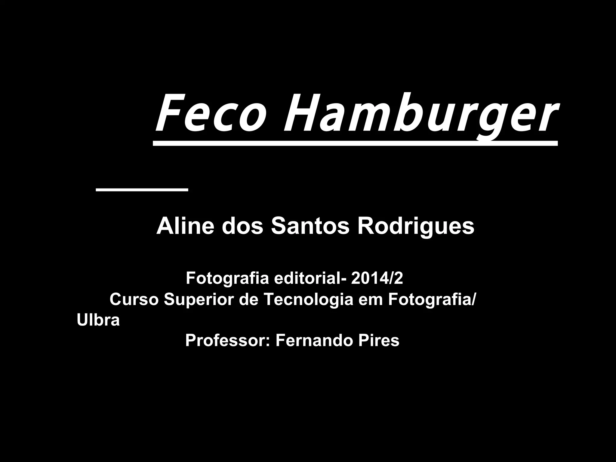 Feco Hamburger é um fotógrafo brasileiro renomado na moda e publicidade. Ele começou trabalhando em um laboratório de fotografia preto e branco e hoje tem seu próprio estúdio em São Paulo, onde fotografa campanhas nacionais e internacionais. Seu trabalho já foi publicado em diversas revistas e ele recebeu prêmios por suas fotos de moda.