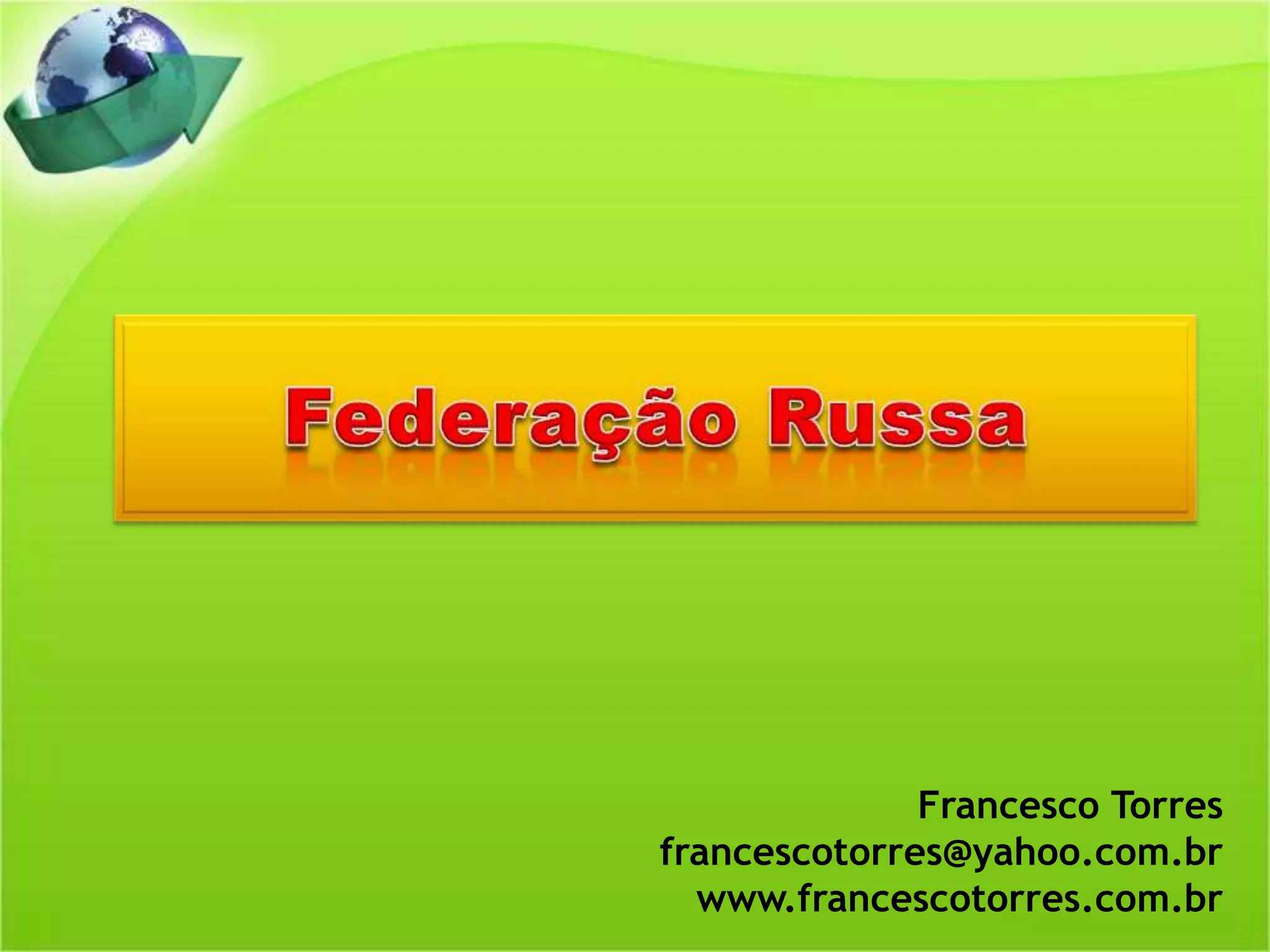 O documento fornece informações sobre a Federação Russa, incluindo sua bandeira, relação com a CEI, repúblicas e distritos, características gerais, relevo, clima, vegetação, população, recursos econômicos e minerais, agricultura e pecuária, e quadro atual do país.