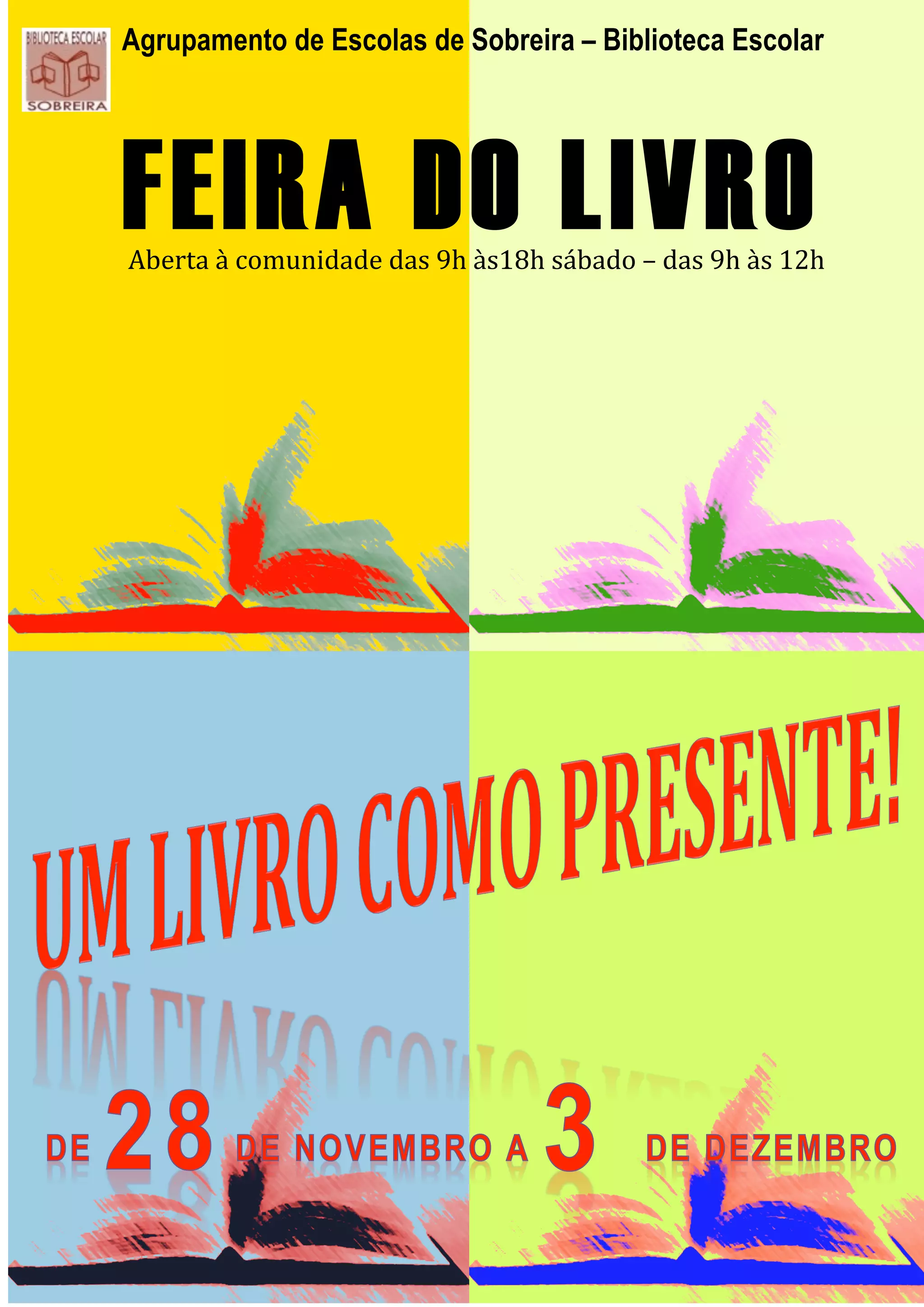 A Escola de Sobreira realizará uma Feira do Livro no sábado das 9h às 18h e no domingo das 9h às 12h, aberta à comunidade, para promover a leitura.