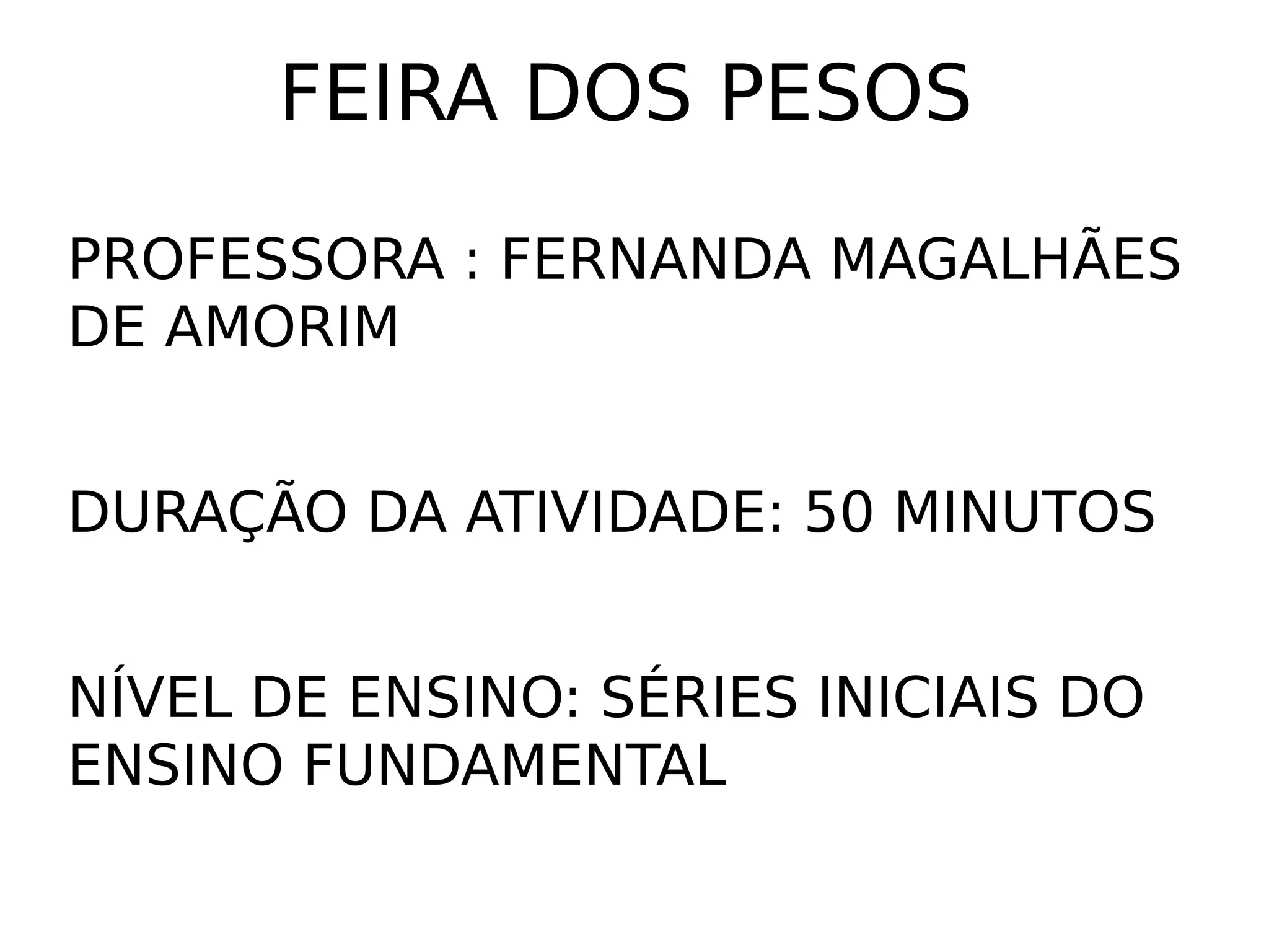 Este documento descreve uma atividade sobre pesos para alunos do ensino fundamental. O objetivo é introduzir conceitos algébricos comparando pesos desconhecidos usando uma balança de dois pratos. Os alunos seriam divididos em grupos para comparar pesos que eles mesmos criariam e ordenariam do mais pesado para o menos pesado.