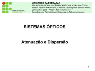3. Os principais tipos de atenuação são absorção pelo material da fibra, espalhamento, deformações mecânicas e perdas em conexões. A dispersão causa um alargamento do pulso óptico