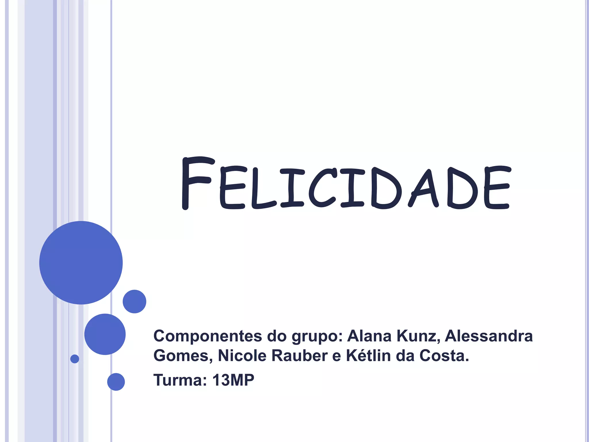 O documento discute as visões de filósofos como Aristóteles, Platão, Epicuro e Sócrates sobre o que é a felicidade. Segundo Aristóteles, a felicidade está na prática das virtudes como sabedoria e justiça. Para Platão, a felicidade está no equilíbrio e harmonia entre os humanos. Já Epicuro acredita que a felicidade é o prazer resultante da satisfação dos desejos. Por fim, Sócrates defendia que a felicidade é o bem da alma, através da conduta justa.