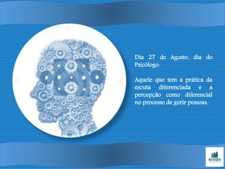 O documento celebra o dia 27 de agosto como o dia do psicólogo, reconhecendo a escuta atenta e a percepção aguçada como habilidades essenciais para ajudar as pessoas.