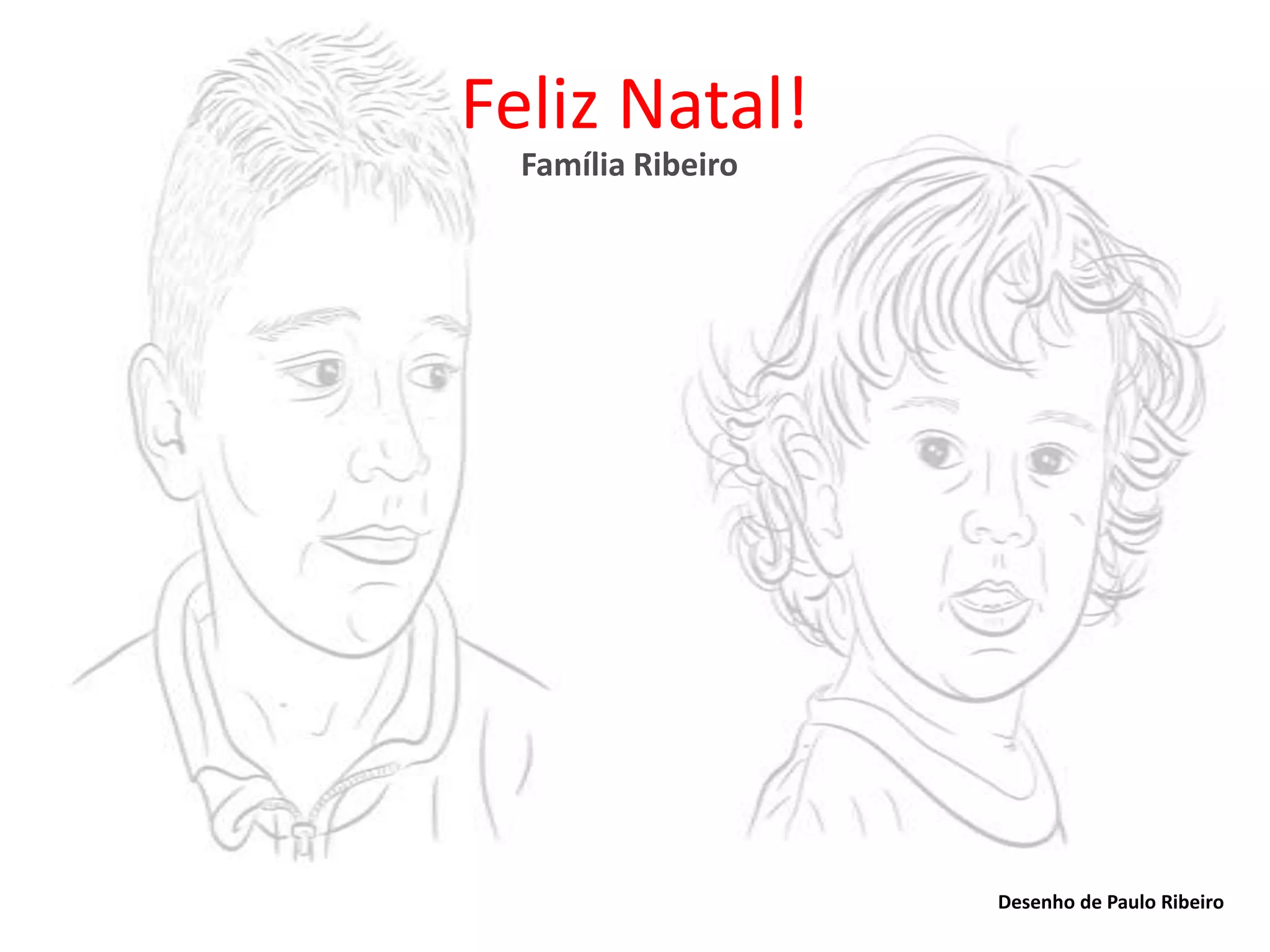 O cartão de Natal da Família Ribeiro deseja Feliz Natal e inclui citações bíblicas sobre o nascimento de Jesus, junto com desenhos e fotos da família celebrando a ocasião.