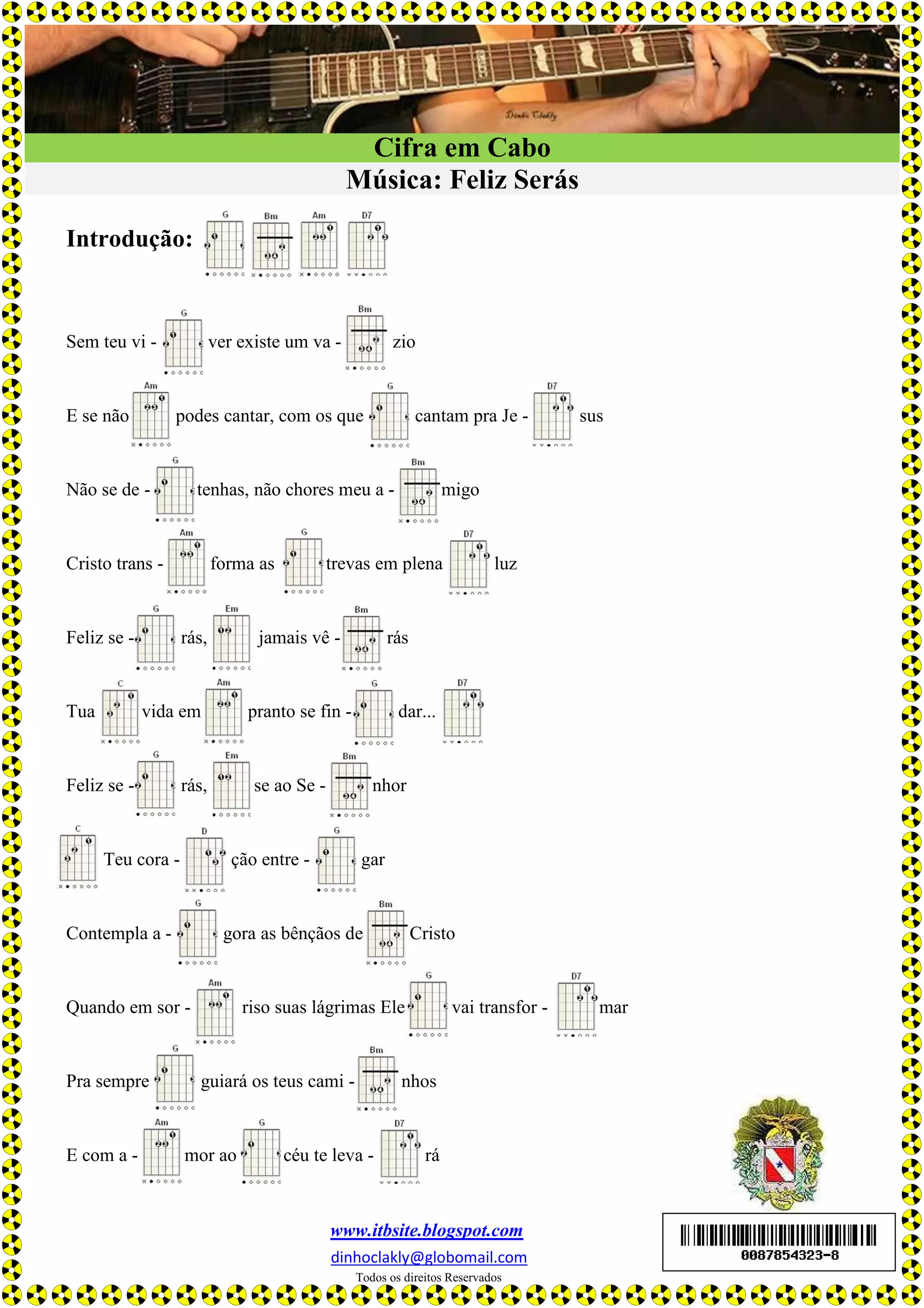 Em 3 frases ou menos: 1) A música "Feliz Serás" apresenta uma introdução sobre como a ausência de Deus deixa um vazio e como cantar para Jesus pode transformar as trevas em luz. 2) O refrão enfatiza que aqueles que entregam seu coração ao Senhor serão felizes e jamais verão sua vida em pranto. 3) A música convida a contemplar as bênçãos de Cristo e como Ele transformará as lágrimas em sorrisos e guiará os caminhos para sempre.