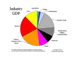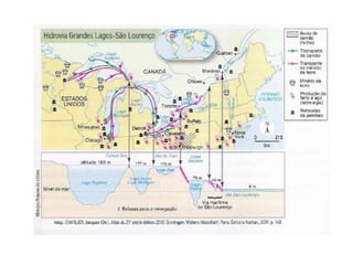 O documento descreve o processo de industrialização dos Estados Unidos, desde as colônias britânicas até a atualidade. Fatores como recursos naturais abundantes, imigração em massa, Guerra Civil e leis de incentivo impulsionaram a industrialização no século XIX, concentrada inicialmente no Nordeste. Ao longo do tempo, a indústria se descentralizou para o Sul e Oeste, com o desenvolvimento de setores como petróleo, aeroespacial e alta tecnologia nessas regiões.