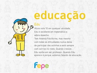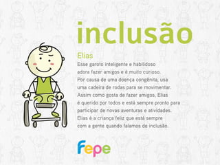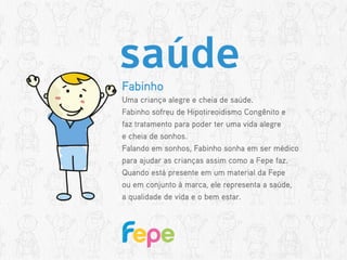 A Fepe precisava de uma nova marca para melhor representar seu trabalho com crianças com deficiência. A solução criou personagens coloridos e uma tipografia moderna para transmitir alegria e expressar os pilares da instituição: saúde, educação, prevenção e inclusão. A nova marca emocionou a Fepe e melhorou sua visibilidade comparada a outras instituições.