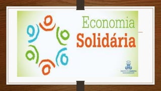A economia solidária promove a cooperação e a autogestão como alternativa ao capitalismo, onde as pessoas trabalham juntas e tomam decisões de forma igualitária sem hierarquias. Exemplos incluem cooperativas de consumo e crédito. Surgiu como resposta à pobreza e desemprego no século XIX e ressurgiu no Brasil nas décadas de 1970-1990 como alternativa à exploração do trabalho.
