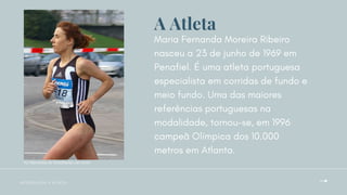 Maria Fernanda Moreira Ribeiro é uma atleta olímpica portuguesa especializada em corridas de fundo e meio fundo. Ela nasceu em 1969 em Penafiel e se tornou campeã olímpica dos 10.000 metros em Atlanta em 1996. Ribeiro demonstrou interesse pelo atletismo desde muito jovem e começou a competir aos 10 anos de idade. Ela estabeleceu vários recordes nacionais juvenis e juniores nos 1.500 e 3.000 metros. Sua carreira de sucesso inclui títulos