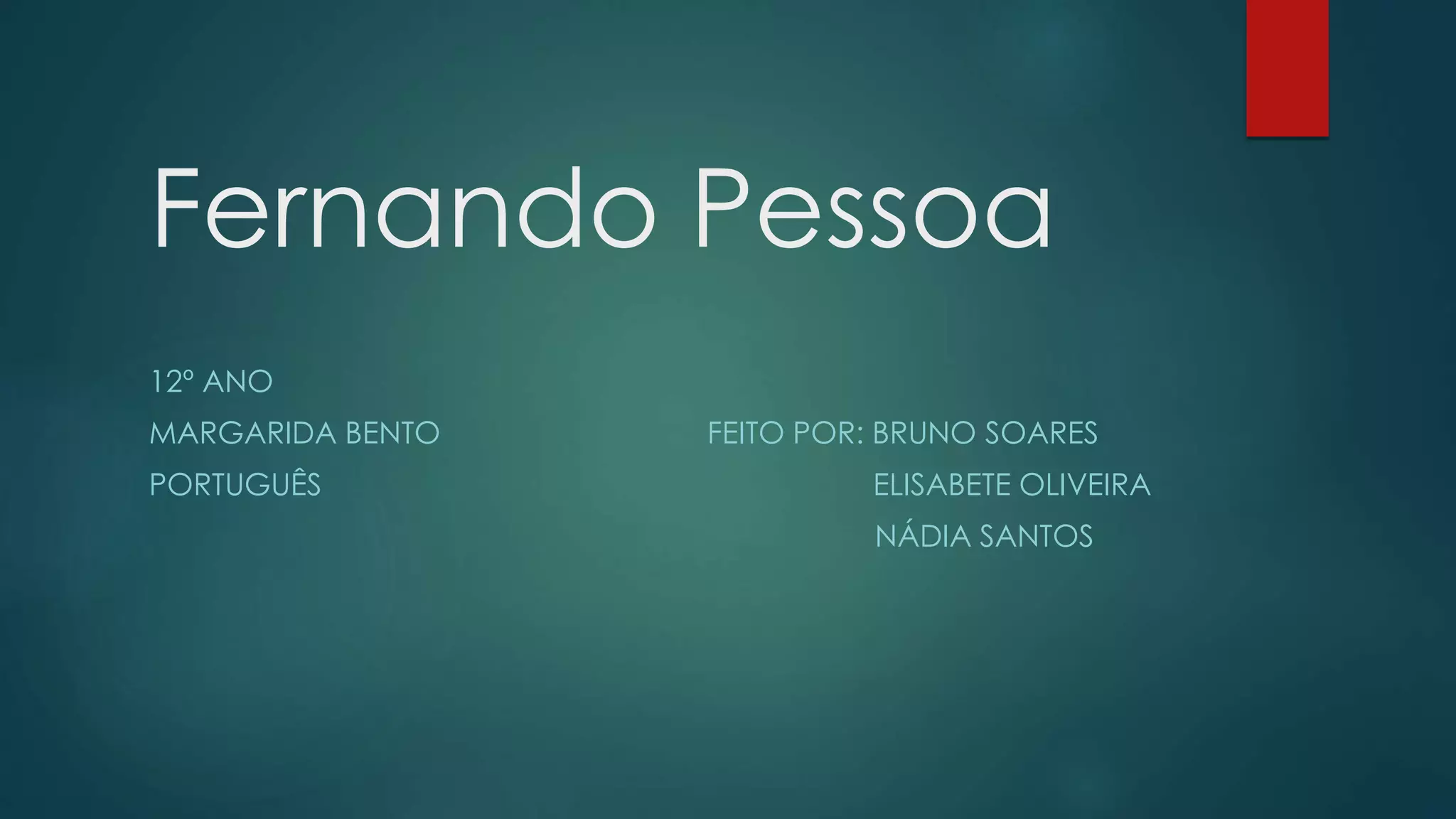 O documento resume a vida e obra do poeta português Fernando Pessoa. Apresenta o contexto histórico em que viveu, características do Modernismo português, seus principais heterônimos, e analisa alguns de seus poemas mais conhecidos.
