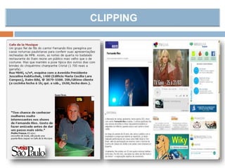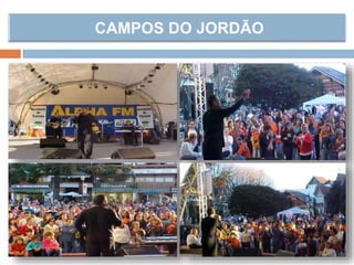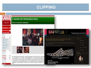 O documento resume apresentações musicais de Fernando Rios em diversos locais como Guarujá, Trancoso, Taubaté e Campos do Jordão entre dezembro de 2011 e julho de 2011. Também descreve o lançamento do álbum "Contagiante" e sucesso do cantor no exterior com seu estilo de misturar gêneros musicais brasileiros.