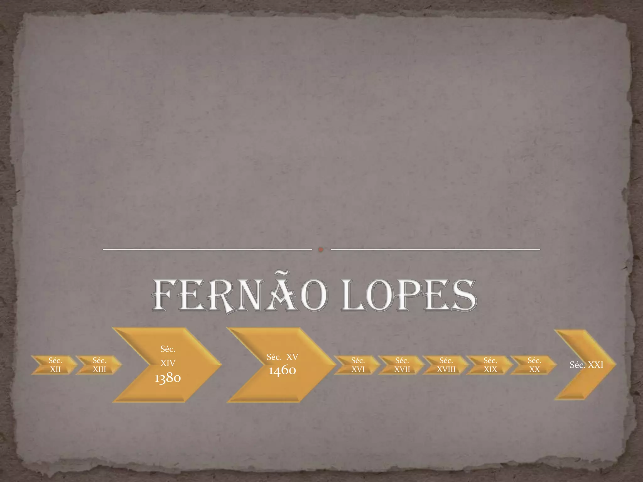 Fernão Lopes foi um cronista português do século XIV que escreveu crônicas reais sobre a história de Portugal desde as origens até sua época. Apelidado de "pai" da história portuguesa, ele relatou os reinados dos primeiros reis de Portugal e presenciou muitas mudanças políticas e sociais durante sua longa carreira como cronista real.