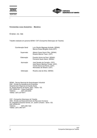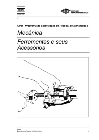O documento descreve diversas ferramentas manuais utilizadas em manutenção mecânica, incluindo alicates, chaves de aperto, torquímetros, calibradores e verificadores. É apresentada a descrição, classificação e utilização de cada ferramenta.