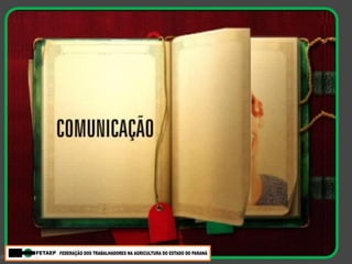 O documento discute a importância da comunicação e das mídias sociais para sindicatos e organizações do setor agrícola. Ele fornece orientações sobre assessoria de imprensa, comunicação interna e externa, e como utilizar ferramentas como sites, rádio, TV e redes sociais para disseminar informações de forma eficaz.