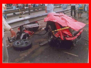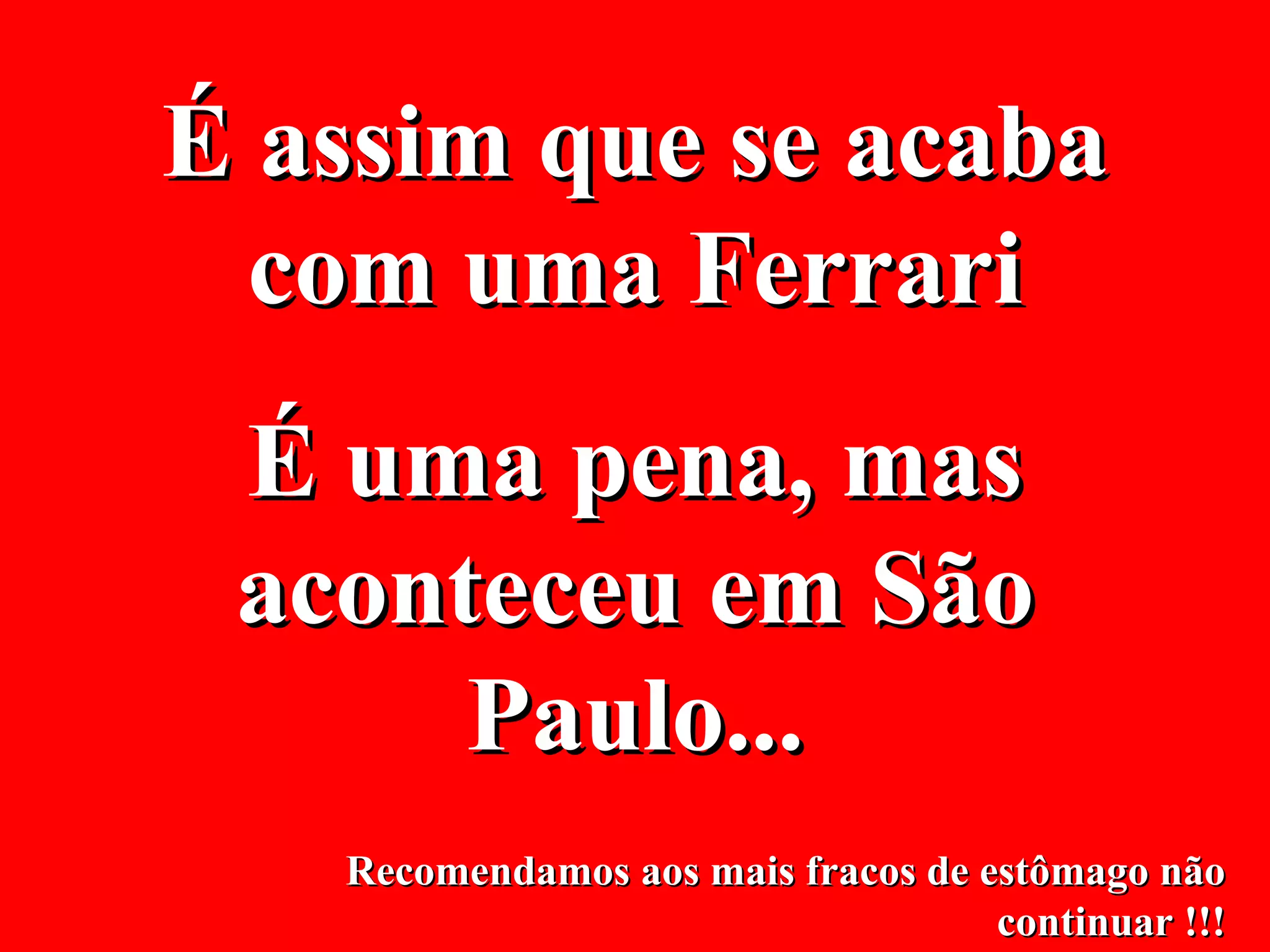 Um acidente com uma Ferrari ocorreu em São Paulo, resultando na destruição do carro de luxo. O documento recomenda aos mais sensíveis não lerem mais detalhes e reflete sobre como sair alguns minutos mais cedo pode evitar acidentes e perdas.