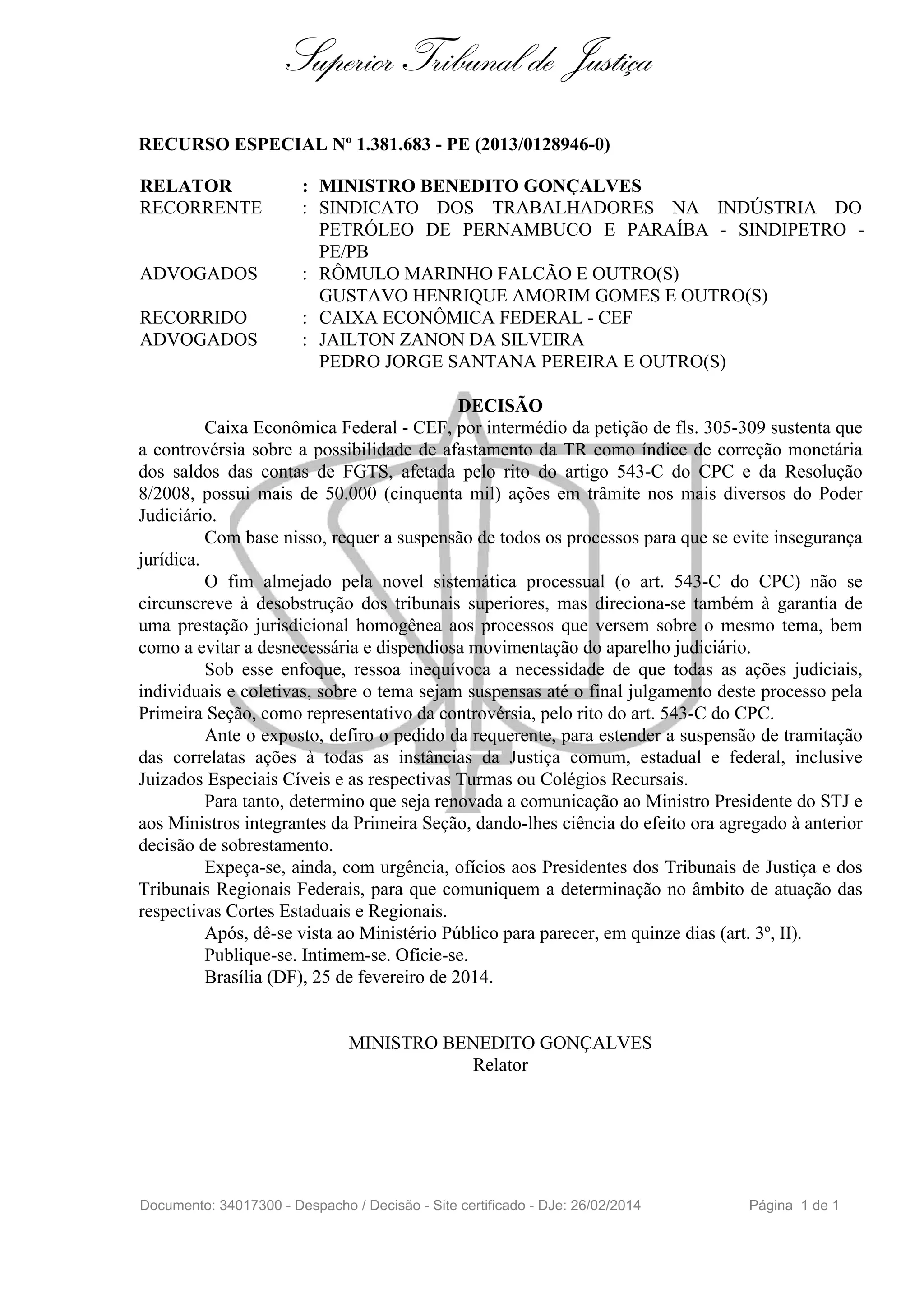 O Superior Tribunal de Justiça suspendeu todas as ações judiciais individuais e coletivas sobre a correção monetária dos saldos das contas do FGTS em todo o país até o julgamento final do processo pelo STJ, visando evitar insegurança jurídica e garantir uma decisão uniforme sobre o tema.