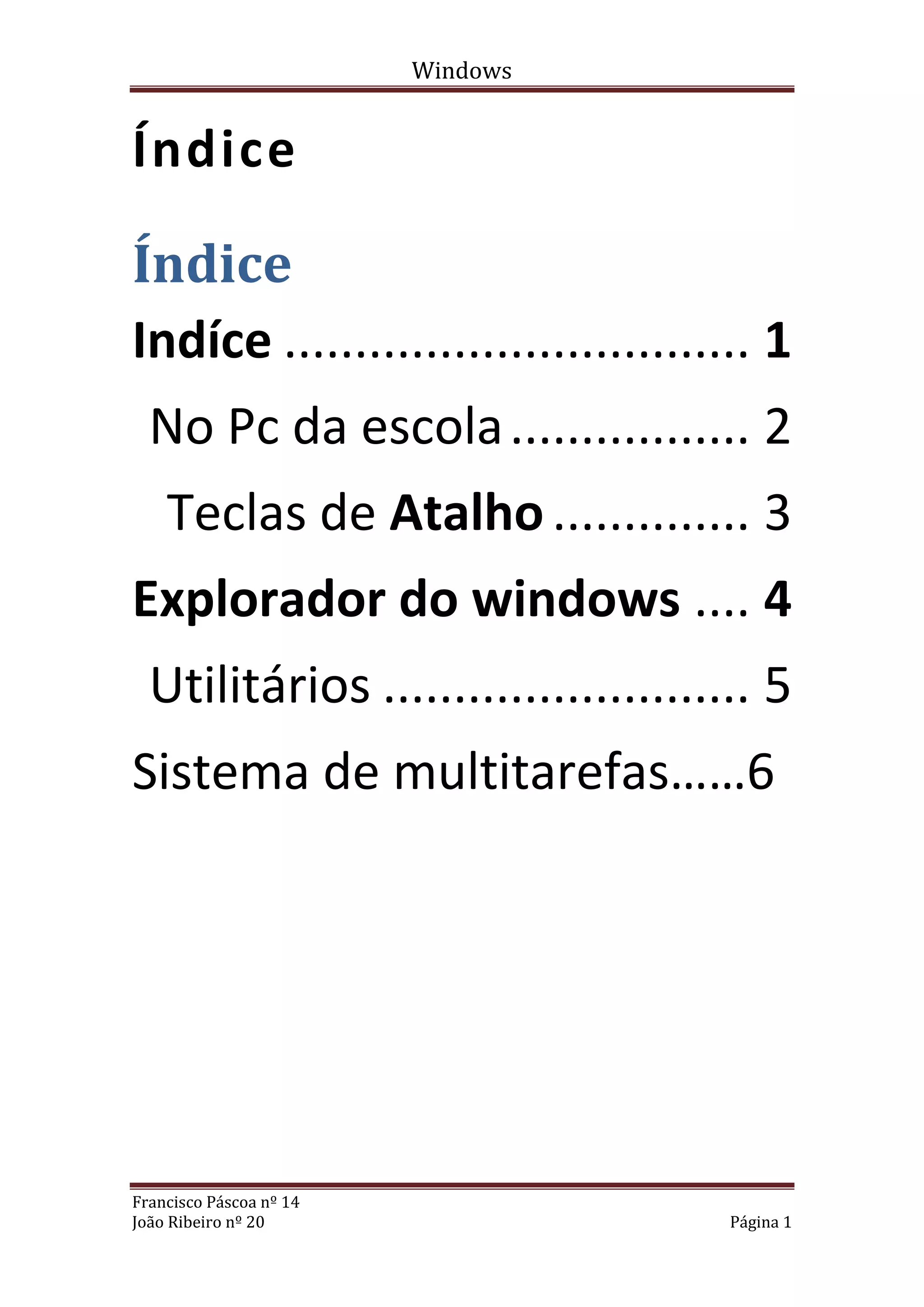 O documento fornece informações sobre o sistema operativo Windows, incluindo: (1) teclas de atalho como Alt + Tab para alternar entre janelas; (2) o Explorador de Arquivos e utilitários; (3) o sistema de multitarefas que permite executar vários programas ao mesmo tempo.