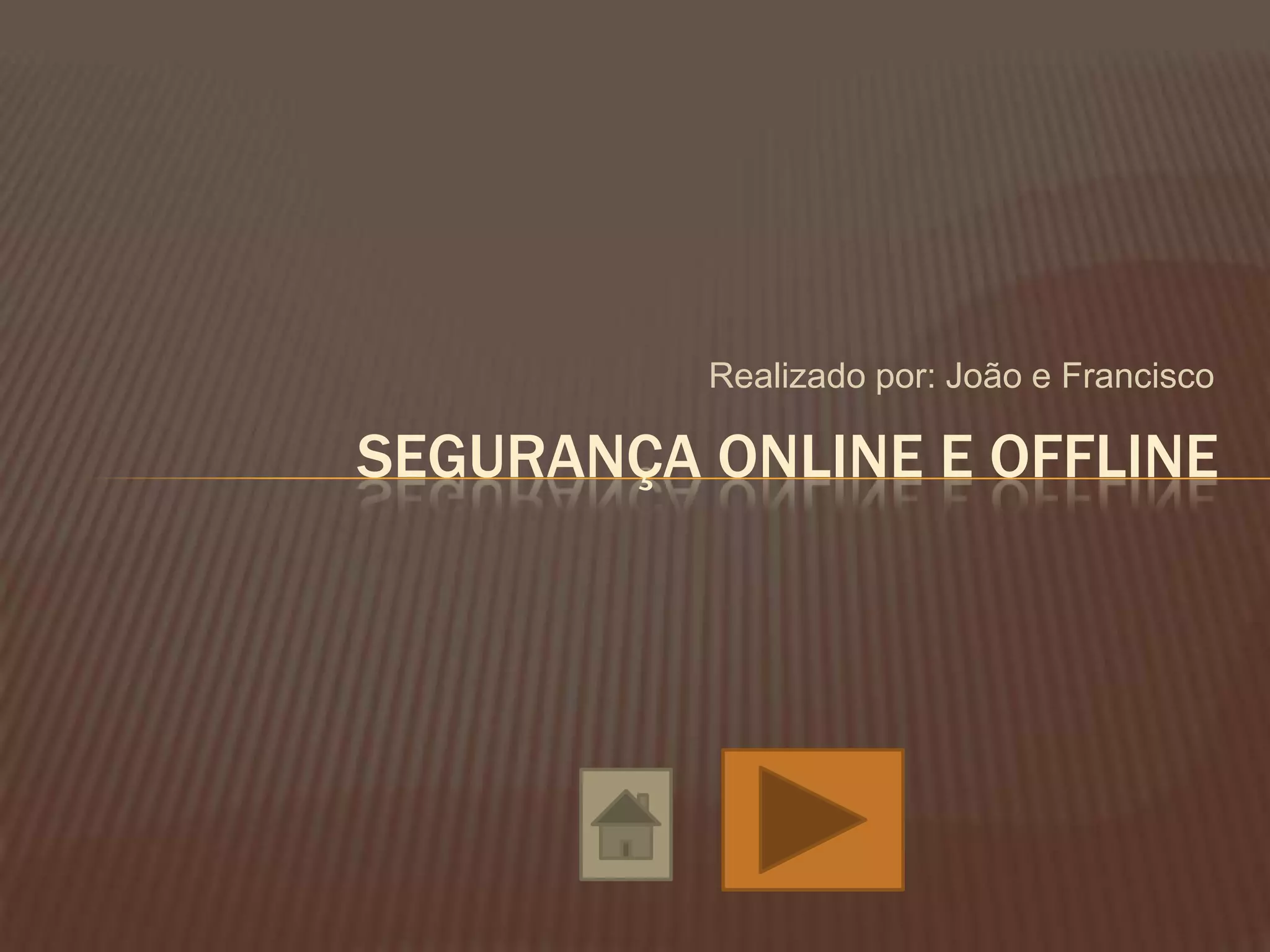O documento discute vários tópicos relacionados à segurança online e offline, incluindo precauções ao usar a internet como senhas seguras e não compartilhar informações pessoais, além de proteções contra ameaças cibernéticas como vírus, cavalos de troia e phishing.