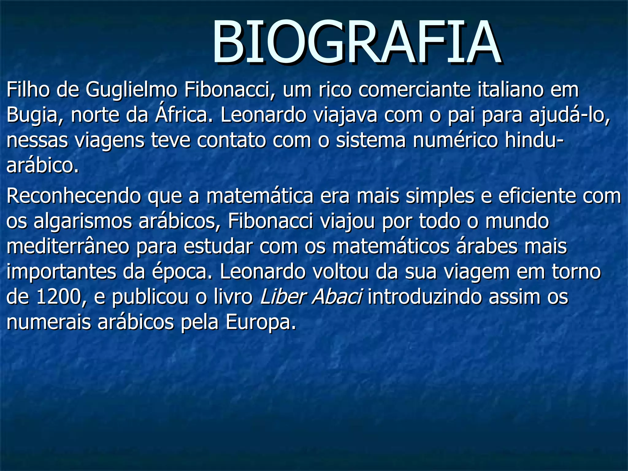 1) Leonardo Fibonacci foi um matemático italiano que popularizou o sistema numérico hindu-arábico na Europa através de seu livro Liber Abaci.