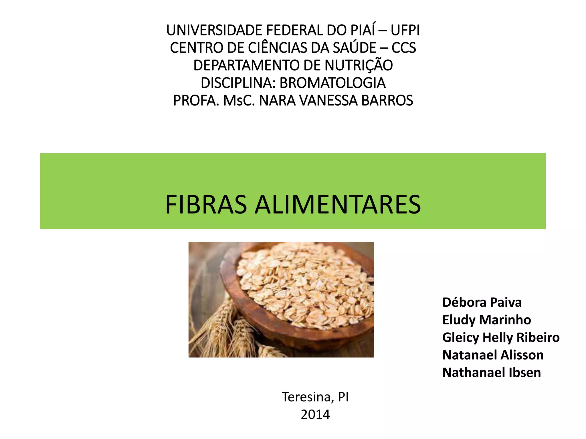 • FERNANDEZ, S. et al. Fibra dietária (revisón). Nutri. Clin., v. 3, n. 13, p. 121-129,