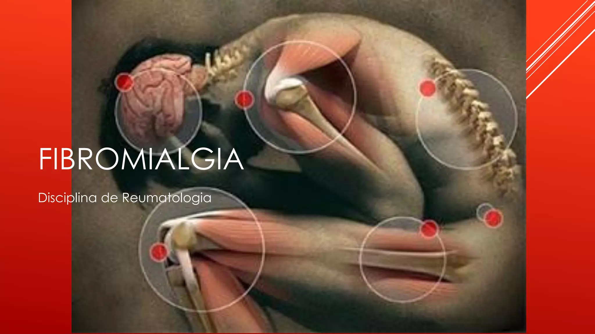 A fibromialgia é caracterizada por dor musculoesquelética difusa e fadiga, causada por sensibilização central que amplifica a percepção de dor. Afeta principalmente mulheres entre 30-50 anos e não tem causas ocupacionais. O tratamento envolve exercícios, educação do paciente, psicoterapia, analgésicos e antidepressivos para aliviar os sintomas.