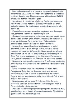 O grupo de amigos vai acampar ao Ribatejo para investigar avistamentos de OVNIs. Encontram uma vaca morta misteriosamente e são perseguidos por um homem armado. Descobrem que os supostos OVNIs estavam relacionados com o roubo e tráfico de gado entre países.