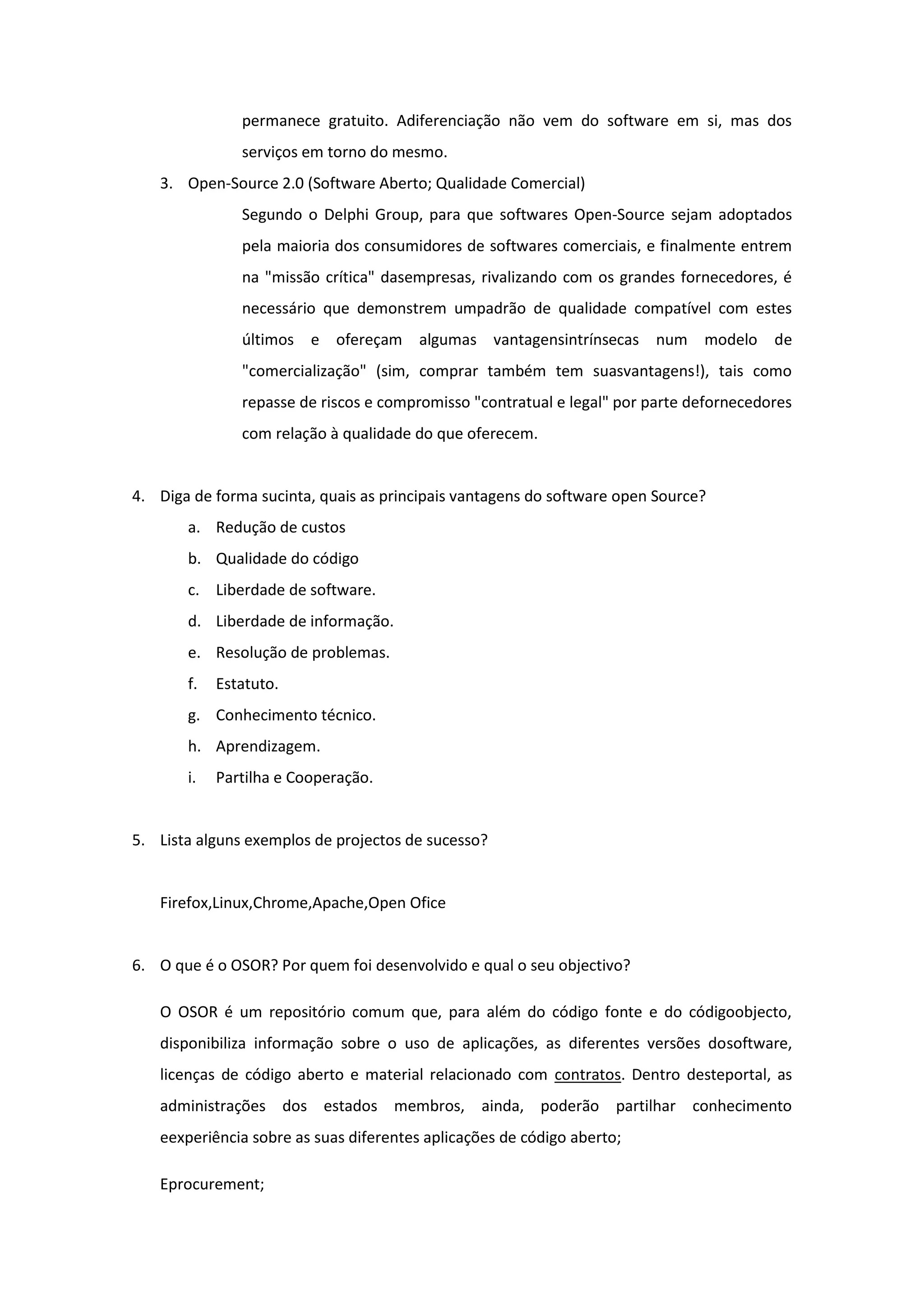 O documento discute software open source, incluindo suas principais vantagens como redução de custos e liberdade, e exemplos de projetos bem-sucedidos como Firefox e Linux. Também descreve as fases de evolução do software open source e o que é o OSOR, um repositório desenvolvido pela União Europeia para promover a partilha e reutilização de aplicações de código aberto entre governos.