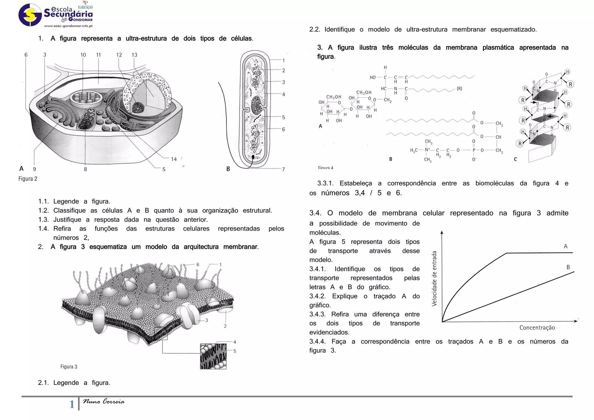 1) O documento discute a ultra-estrutura de células e membranas celulares, incluindo modelos de membrana e transporte através da membrana.