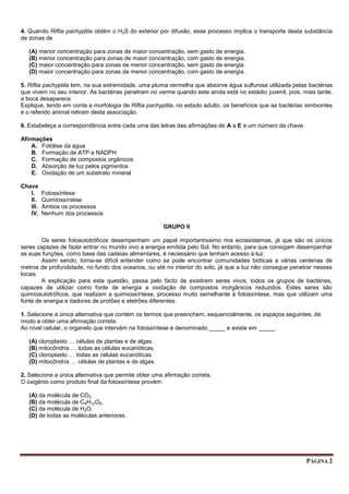 1) Ecossistemas hidrotermais profundos são sustentados por bactérias quimiossintéticas que obtêm energia da oxidação de sulfuretos.