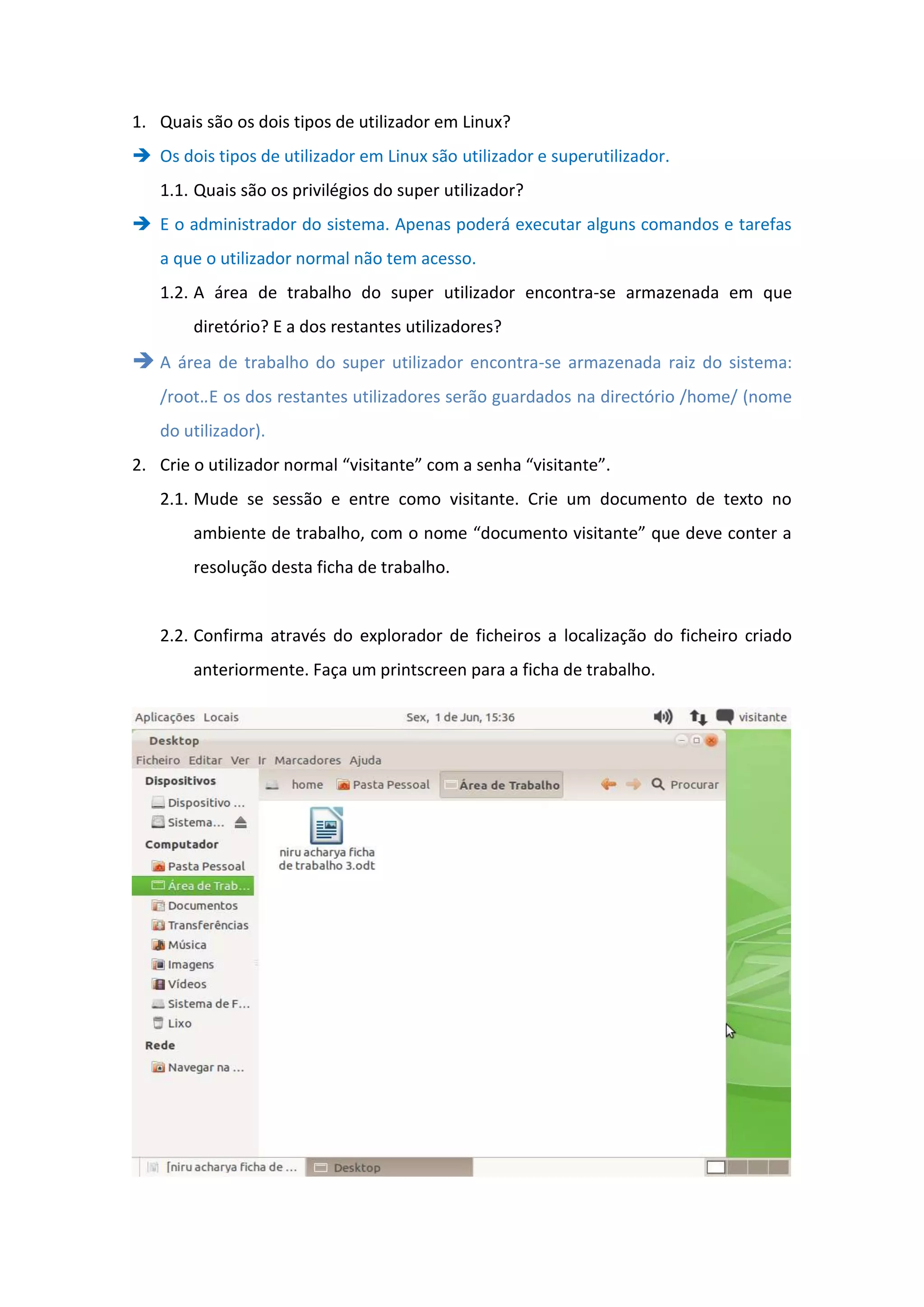 1. Quais sãoos dois tipos de utilizador em Linux?