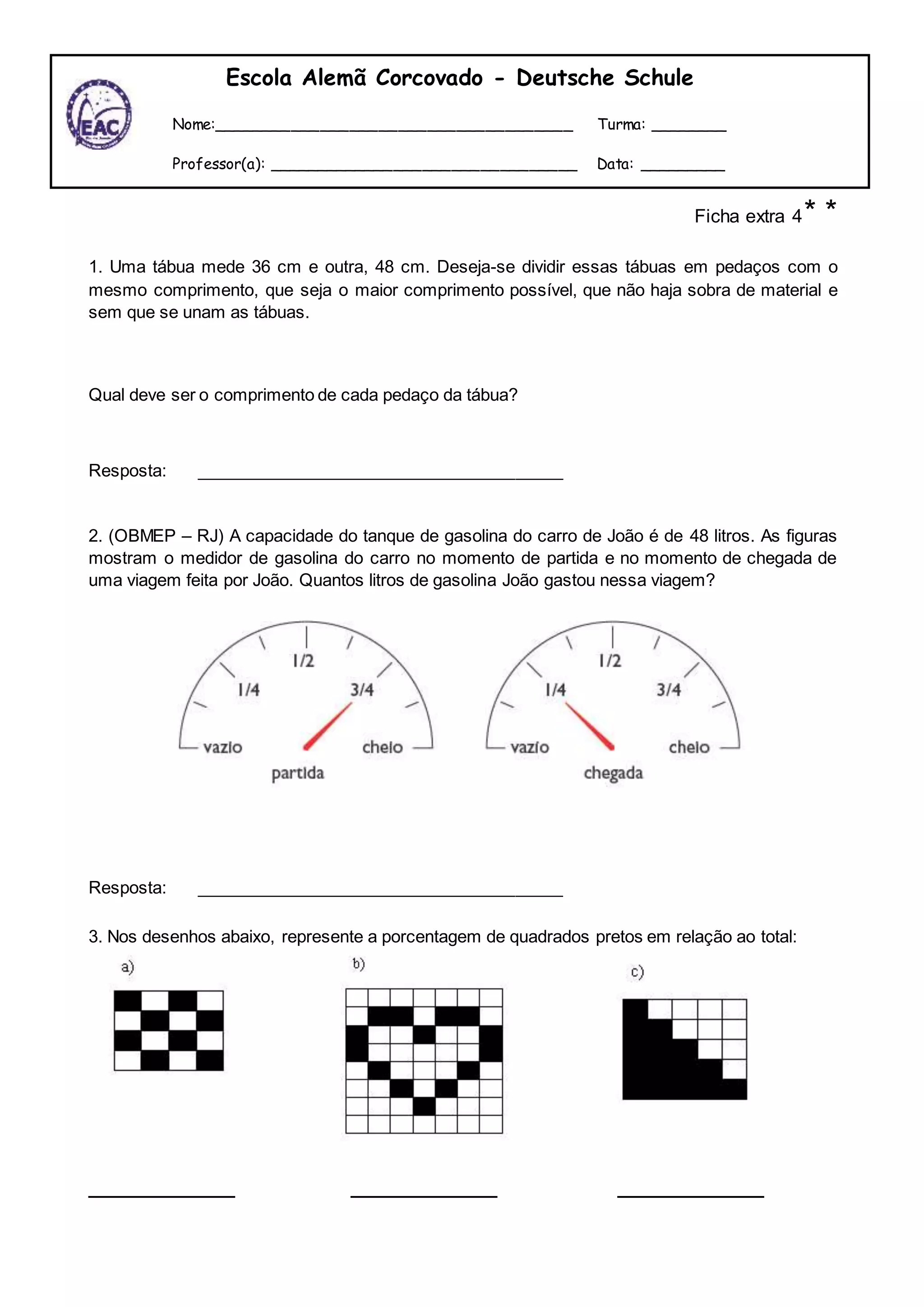 2. (OBMEP – RJ) A capacidade do tanque de gasolina do carro de João é de 48 litros. As figuras