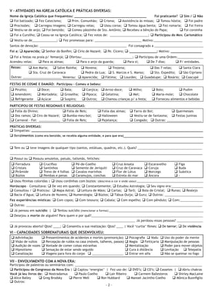 Este documento é um questionário para aconselhamento espiritual. Contém perguntas sobre a história religiosa e espiritual da pessoa, sentimentos, atitudes e vícios atuais, e envolvimento com práticas religiosas e espirituais diversas. O objetivo é identificar áreas onde a pessoa deseja libertação e cura espiritual.