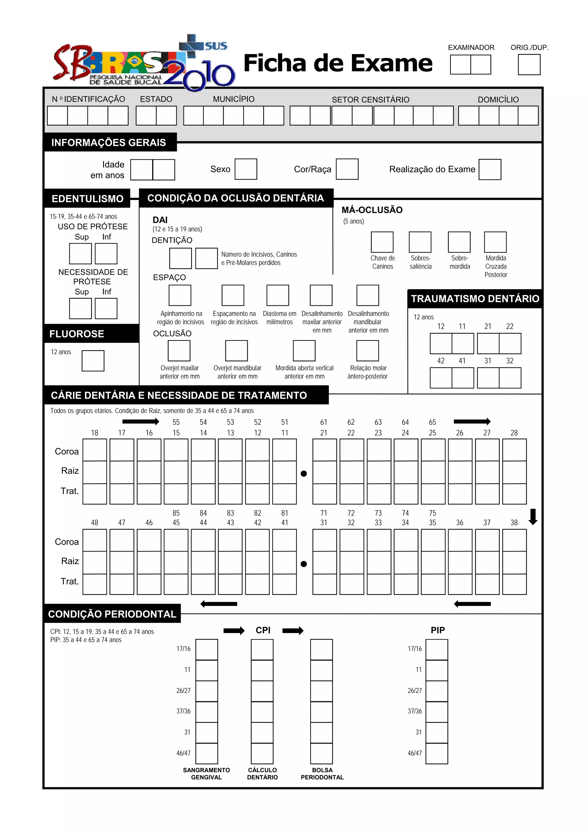 2) Inclui dados como idade, sexo, cor, condição da oclusão, cárie, necessidade de tratamento e prótese.
