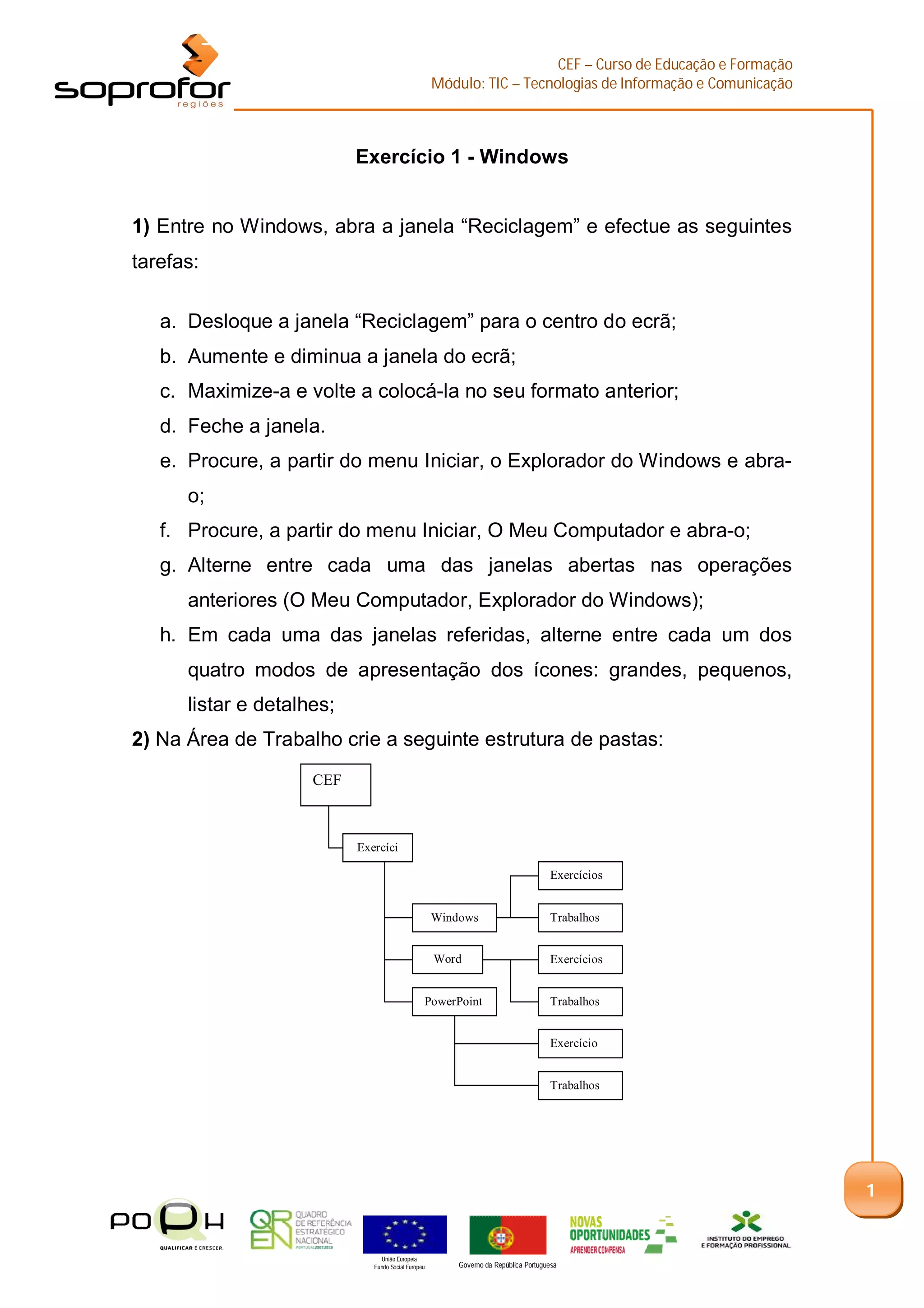 Este documento apresenta 5 exercícios relacionados ao Windows que ensinam como: