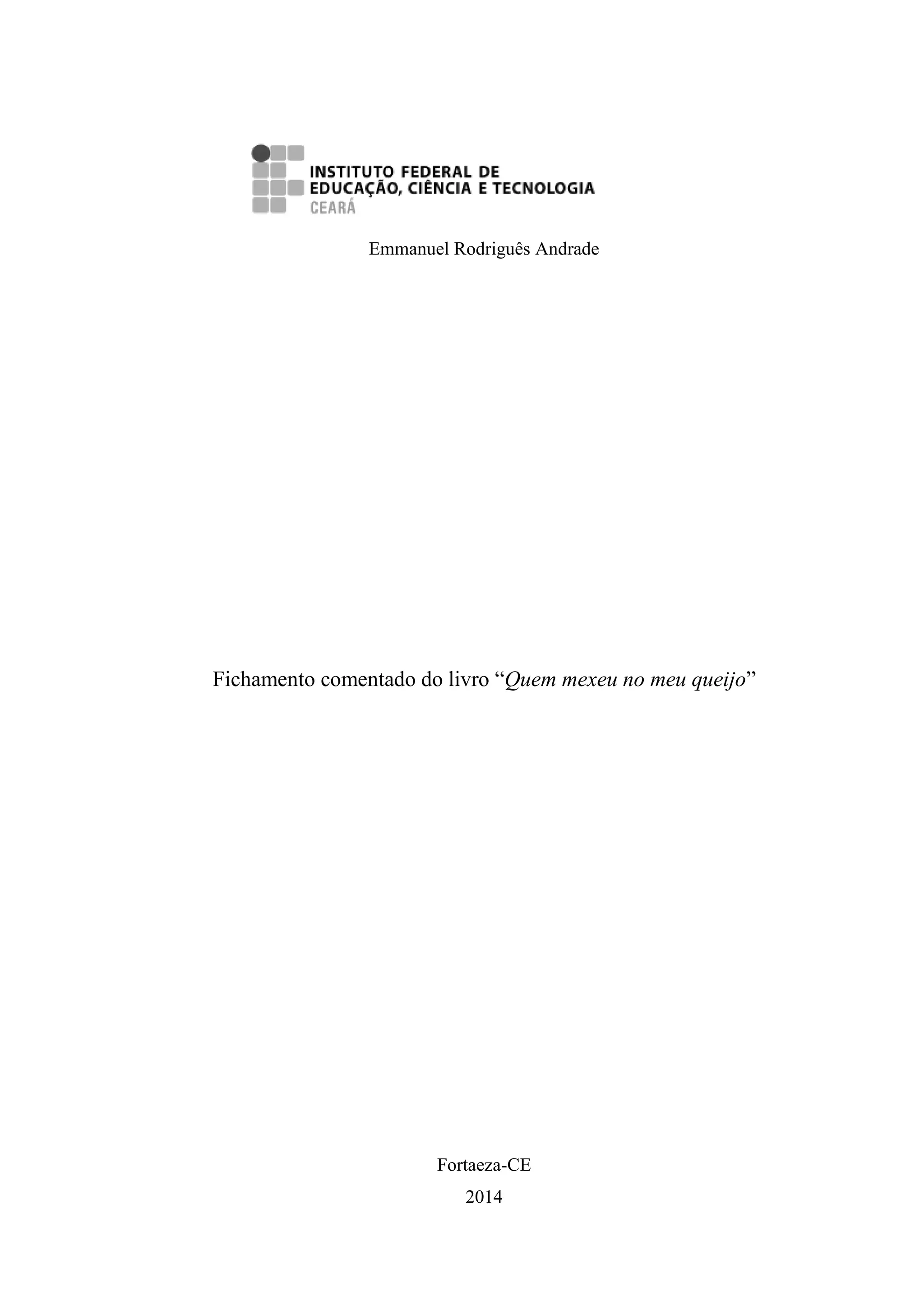 O documento apresenta um resumo comentado do livro "Quem mexeu no meu queijo" de Spencer Johnson. O livro é dividido em quatro partes e conta a história de duas personagens, Hem e Haw, que vivem em um labirinto em busca de queijo. O resumo destaca como as personagens lidam com a mudança quando o queijo some e as lições sobre adaptação aos novos cenários.