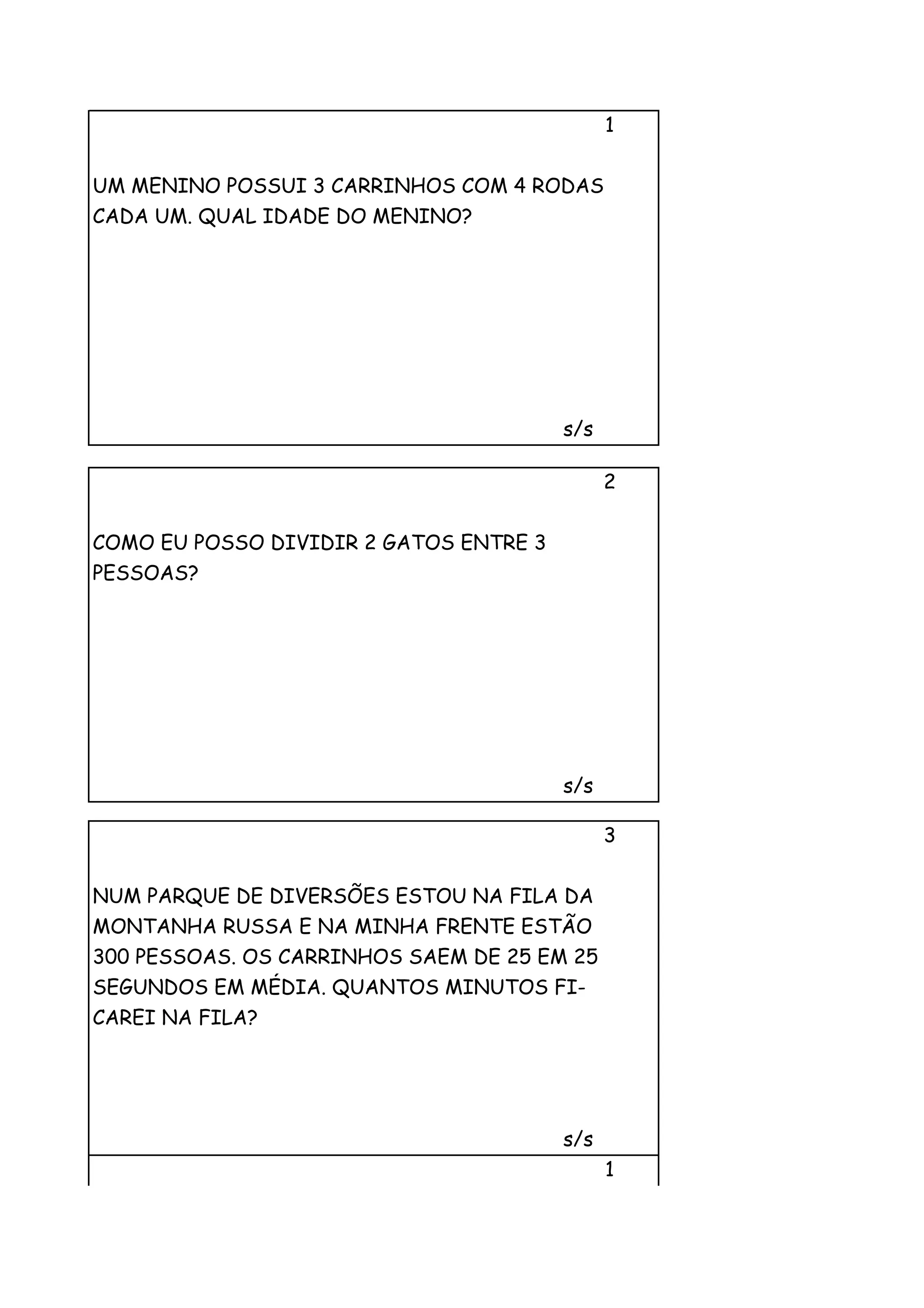 UM MENINO POSSUI3 CARRINHOS COM 4 RODAS