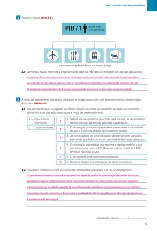 O documento discute a diferença entre crescimento económico e desenvolvimento. O crescimento económico é medido por indicadores como o PIB e se refere ao aumento da produção e riqueza, enquanto o desenvolvimento é mais amplo e leva em conta fatores sociais, de qualidade de vida e sustentabilidade. Países menos desenvolvidos tendem a ter menores índices em educação, saúde e renda em comparação com países mais desenvolvidos.