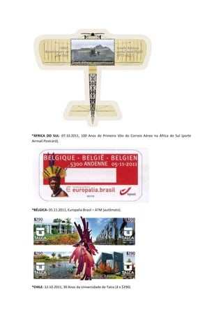 O boletim eletrônico anuncia novas emissões filatélicas e numismáticas no Brasil e no exterior, além de eventos filatélicos programados para novembro de 2011, como a Exposição Filatélica Nacional de Temática Religiosa GABRIEL 2011 em Aparecida/SP.