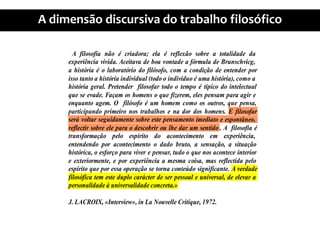 A Filosofiaprocuraumacompreensãodatotalidade;A Filosofia tem um papellibertador.Ora, estafunçãolibertadoradaFilosofiasó é possívelnamedidaemqueo Homemadquire e desenvolvecapacidadeslinguísticasaoexigirque as teorias e soluçõesse apresentem com clareza de conceitose rigor de raciocínio.