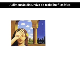 FILOSOFIA E ARGUMENTAÇÃOOdiscurso de um sujeito é a manifestaçãodalíngua, é a línguano exercício individual.A obediência a regrasgramaticais é condiçãonecessária, masnãoSuficiente, para a elaboração de um discursocorrecto.São necessárias as regrasLógicas