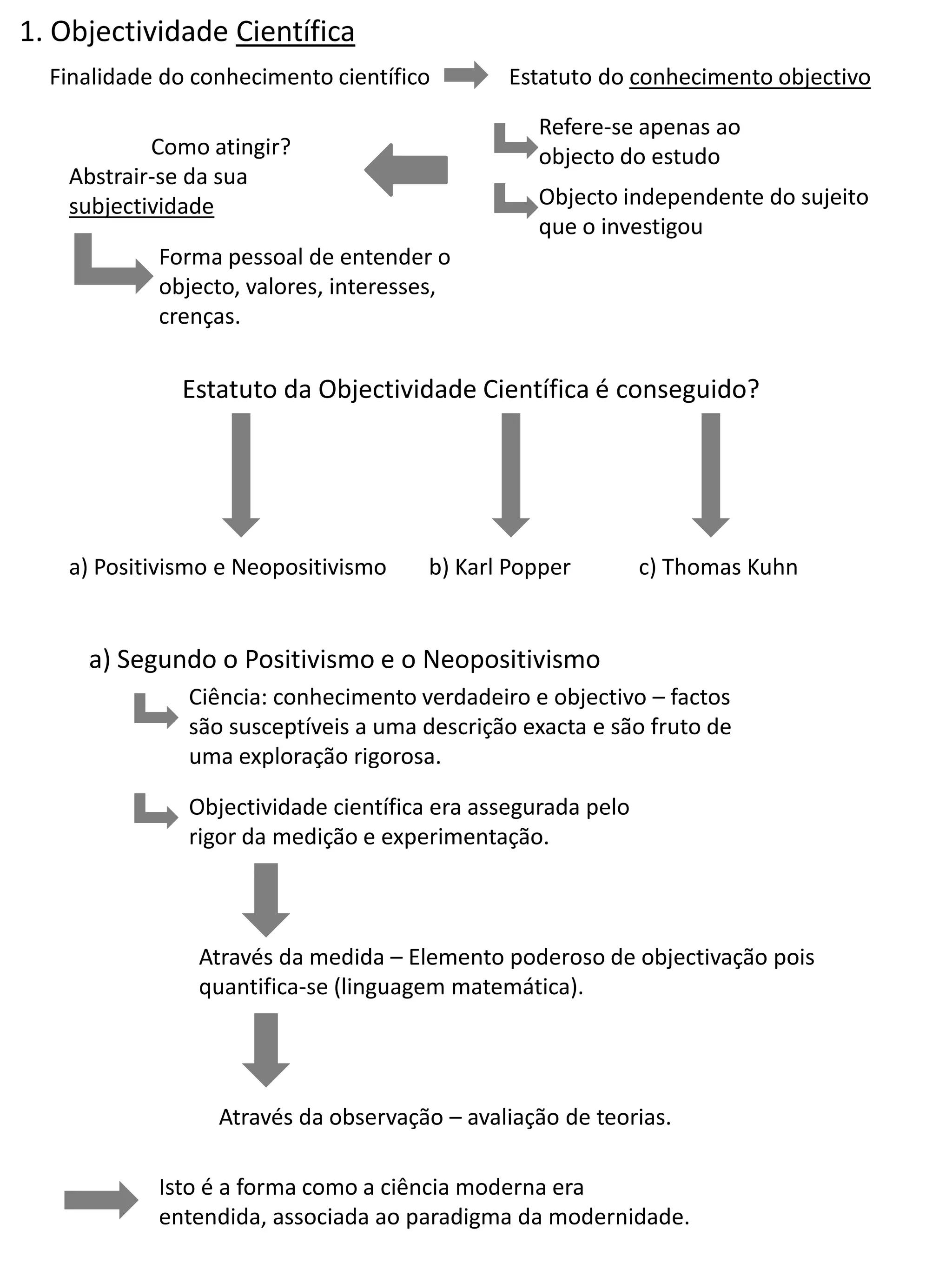 O documento discute como a visão da objetividade científica mudou ao longo do tempo. Positivistas viam a ciência como objetiva e baseada em fatos, mas pensadores posteriores como Popper, Kuhn e Rorty argumentam que a ciência é um esforço intersubjetivo e depende do contexto cultural e dos valores dos cientistas. A racionalidade científica é agora vista como relativa e condicionada, em vez de absoluta.