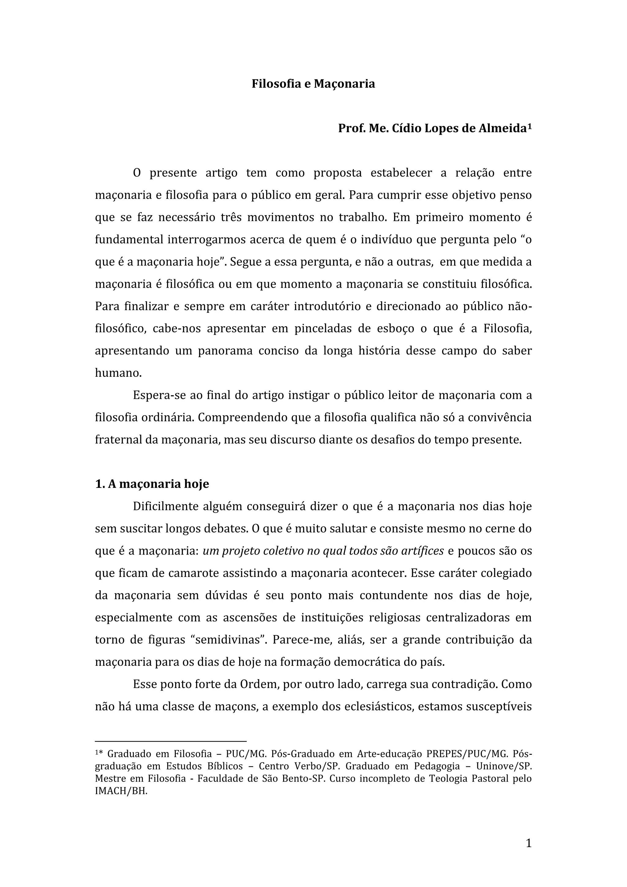 O documento discute a relação entre filosofia e maçonaria. Apresenta que a maçonaria é filosófica pois utiliza conceitos filosóficos para orientar suas práticas formativas, visando promover a sociabilidade e reflexão sobre questões universais da condição humana. Também contextualiza historicamente a maçonaria no Iluminismo, quando surgiam sociedades laicas para debates filosóficos.