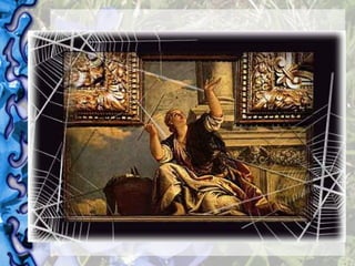 Este documento discute a origem da filosofia e dos mitos. A filosofia surgiu nos séculos VII-VI a.C. nas cidades gregas da Ásia Menor como uma interpretação dos mitos religiosos da época. Os mitos foram criados para explicar fenômenos naturais e eventos do passado. O texto apresenta o mito de Aracne, uma tecelã que desafiou a deusa Atena para uma competição de tecelagem e foi transformada em aranha após perder.