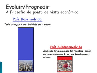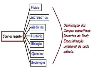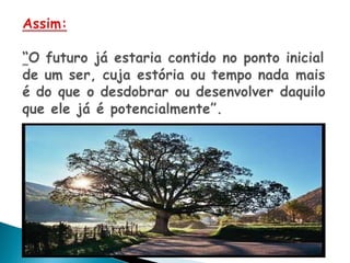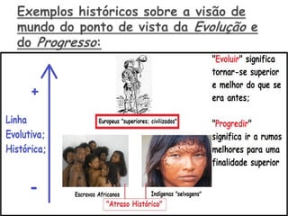 O documento discute a distinção entre filosofia e ciência, com cada uma tendo seu próprio campo de estudo. A filosofia tem uma abordagem mais ampla ao integrar todos os conhecimentos, enquanto a ciência estuda campos específicos. Também apresenta a teoria das revoluções científicas de Thomas Kuhn, onde novos paradigmas substituem os antigos quando não conseguem mais explicar mudanças. Por fim, discute a concepção de tempo como uma linha evolutiva e progressiva, com o presente e futuro melhores