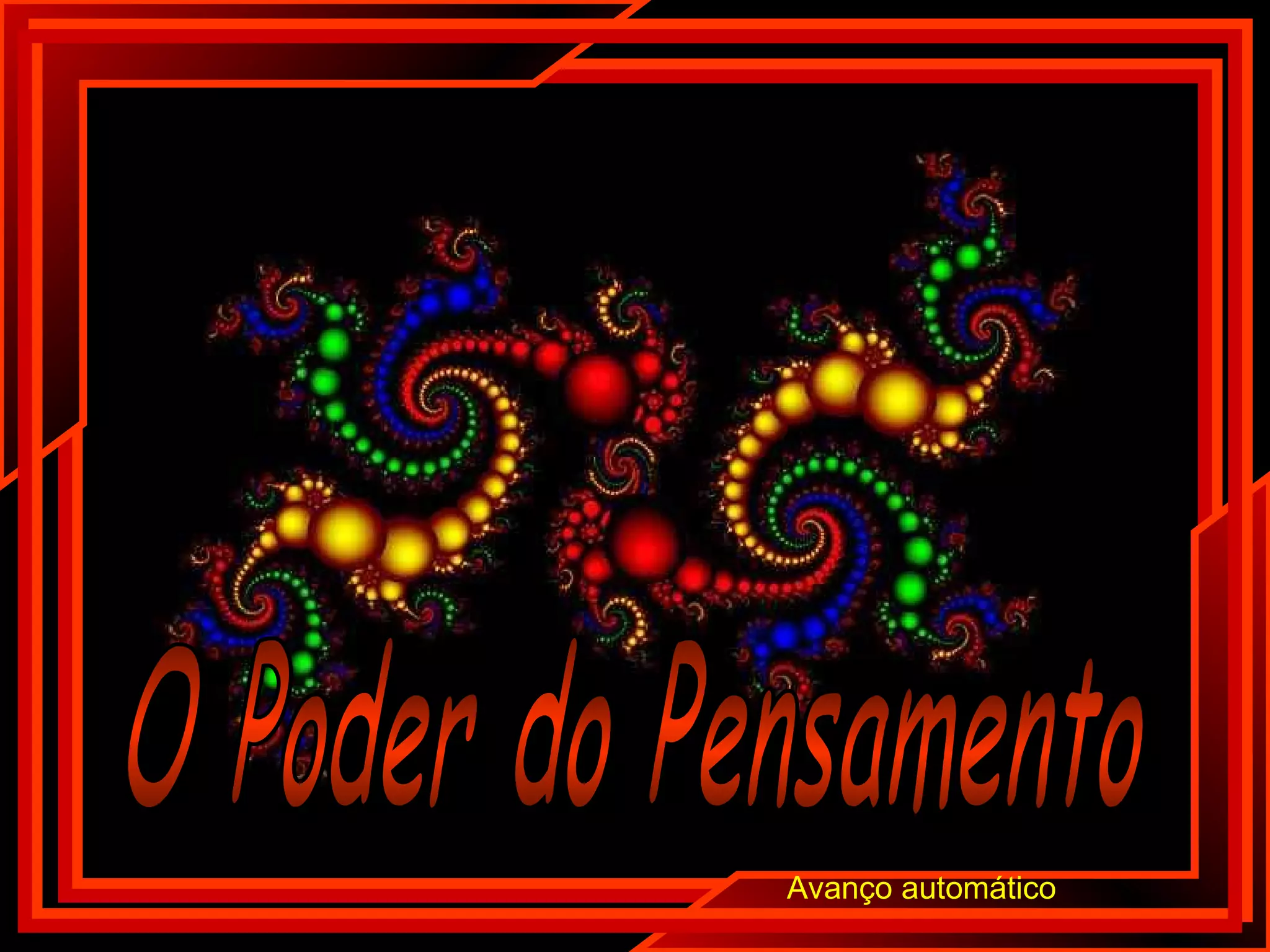 O documento discute o poder do pensamento, como os pensamentos atraem experiências e realidades para nossas vidas e como eles influenciam nossas emoções e saúde. Ao cultivarmos bons pensamentos, podemos alcançar a felicidade e realizar nossos desejos mais profundos.