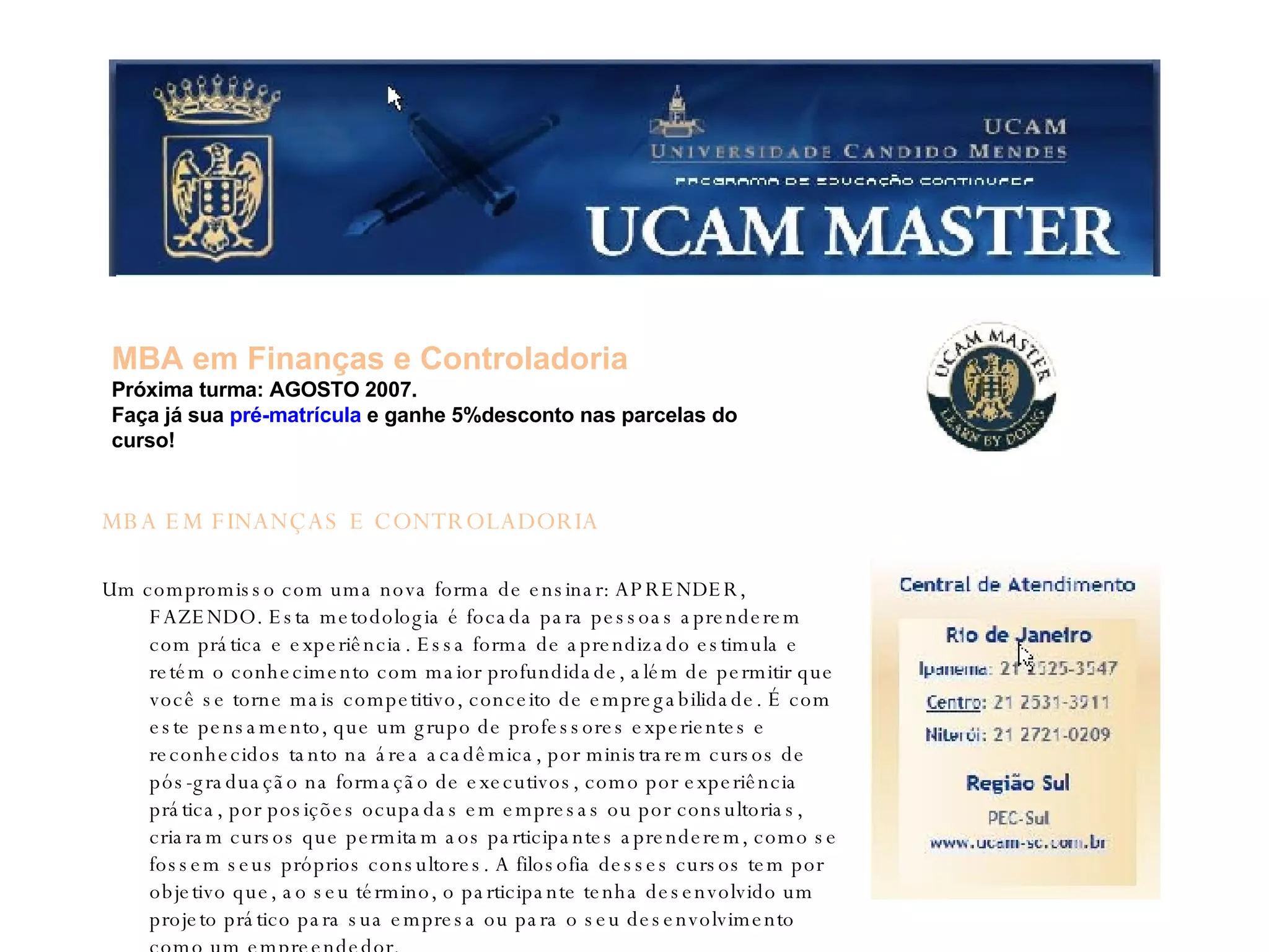 Este documento descreve um curso de MBA em Finanças e Controladoria com foco em aprendizado prático através do desenvolvimento de um projeto. O curso é dividido em três módulos abordando conceitos básicos, ferramentas e aplicabilidade, com o objetivo de capacitar os alunos a analisar negócios como consultores.