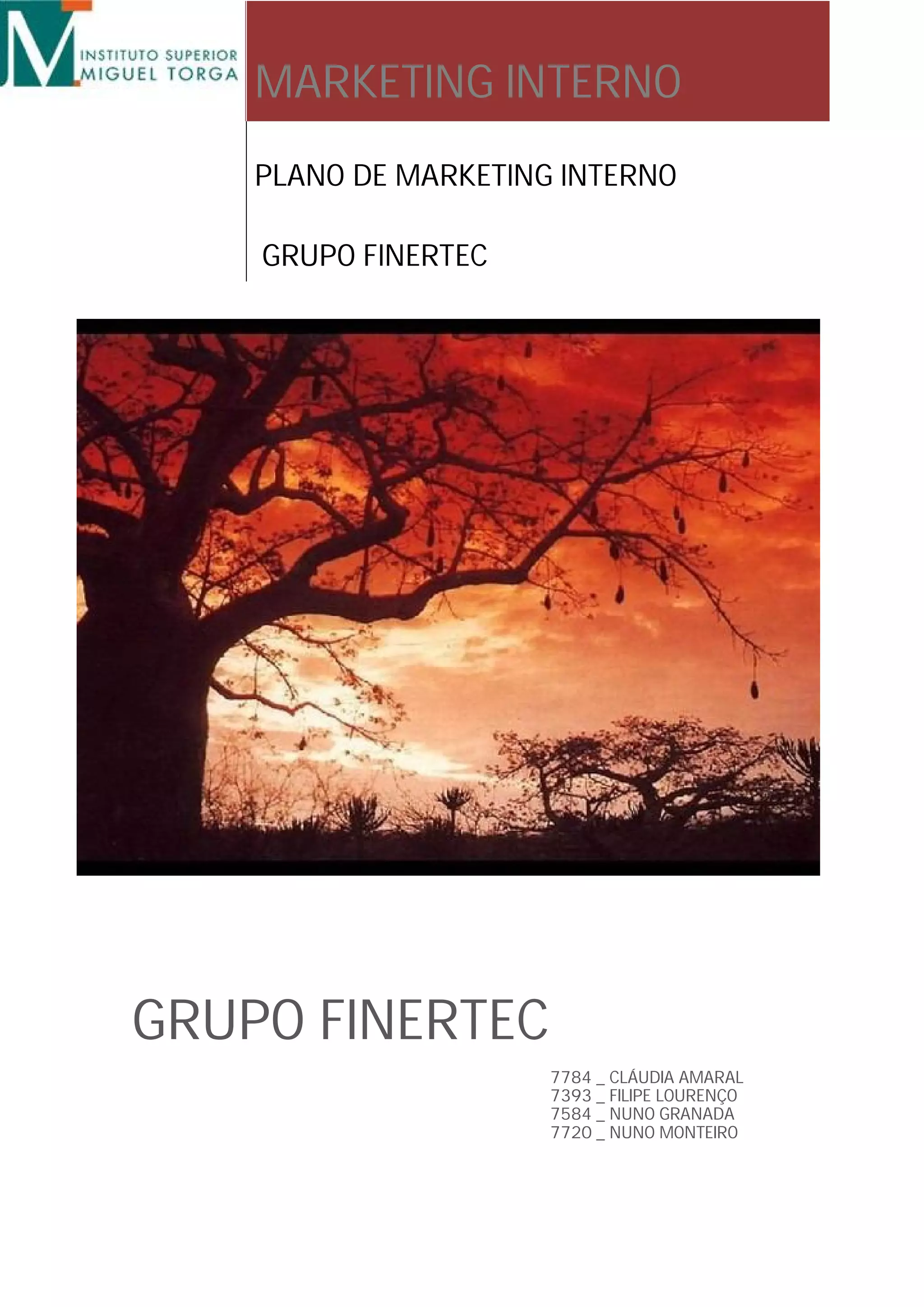 Este documento apresenta o plano de marketing interno do Grupo Finertec para melhorar a comunicação e gestão dos recursos humanos. O Grupo Finertec opera em vários países de língua portuguesa nos setores de energia, engenharia e construção. O plano propõe novas diretrizes para o departamento de recursos humanos, incluindo a implementação de programas de formação e incentivos para fidelizar funcionários.