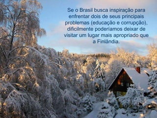 A Finlândia investe fortemente na educação de seu povo, oferecendo formação ao longo da vida para todos, independentemente da condição social. Isso fez do país um dos mais competitivos do mundo e com baixos níveis de corrupção, apesar de ter poucos recursos naturais. A presidente finlandesa credita o sucesso do país a investimentos maciços e contínuos em educação básica.