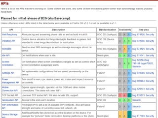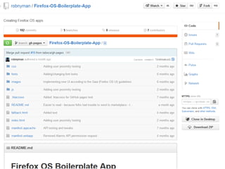 O documento orienta sobre como iniciar o desenvolvimento de web apps para Firefox OS utilizando HTML, CSS e JavaScript. Ele inclui etapas essenciais como a criação de um arquivo de manifesto e dicas sobre design e simulação do aplicativo. Referências e links úteis são fornecidos para suporte durante o desenvolvimento e distribuição do app no Firefox Marketplace.