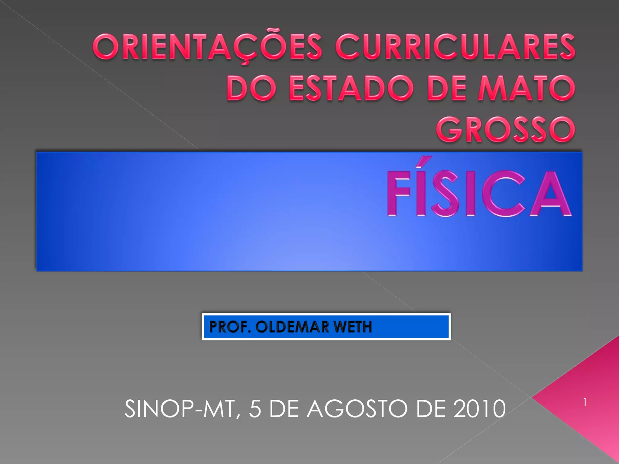 O documento discute a história do ensino de física no Brasil e em Mato Grosso, propostas curriculares antigas e suas limitações, e sugestões para um ensino de física significativo e relevante para os estudantes, incluindo o uso de situações-problema e abordagens interdisciplinares.